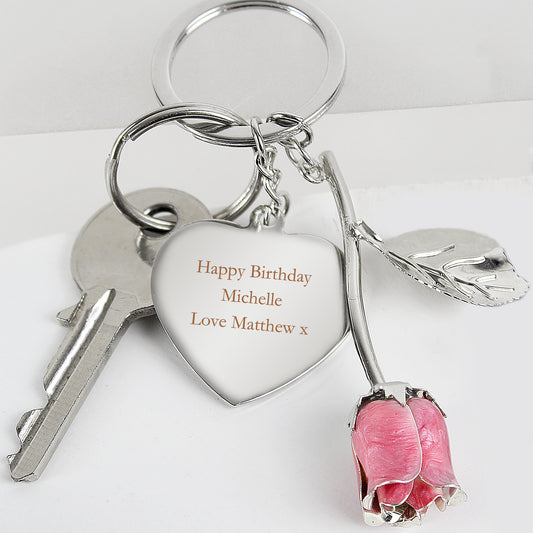 Personalised Silver Plated Pink Rose ...