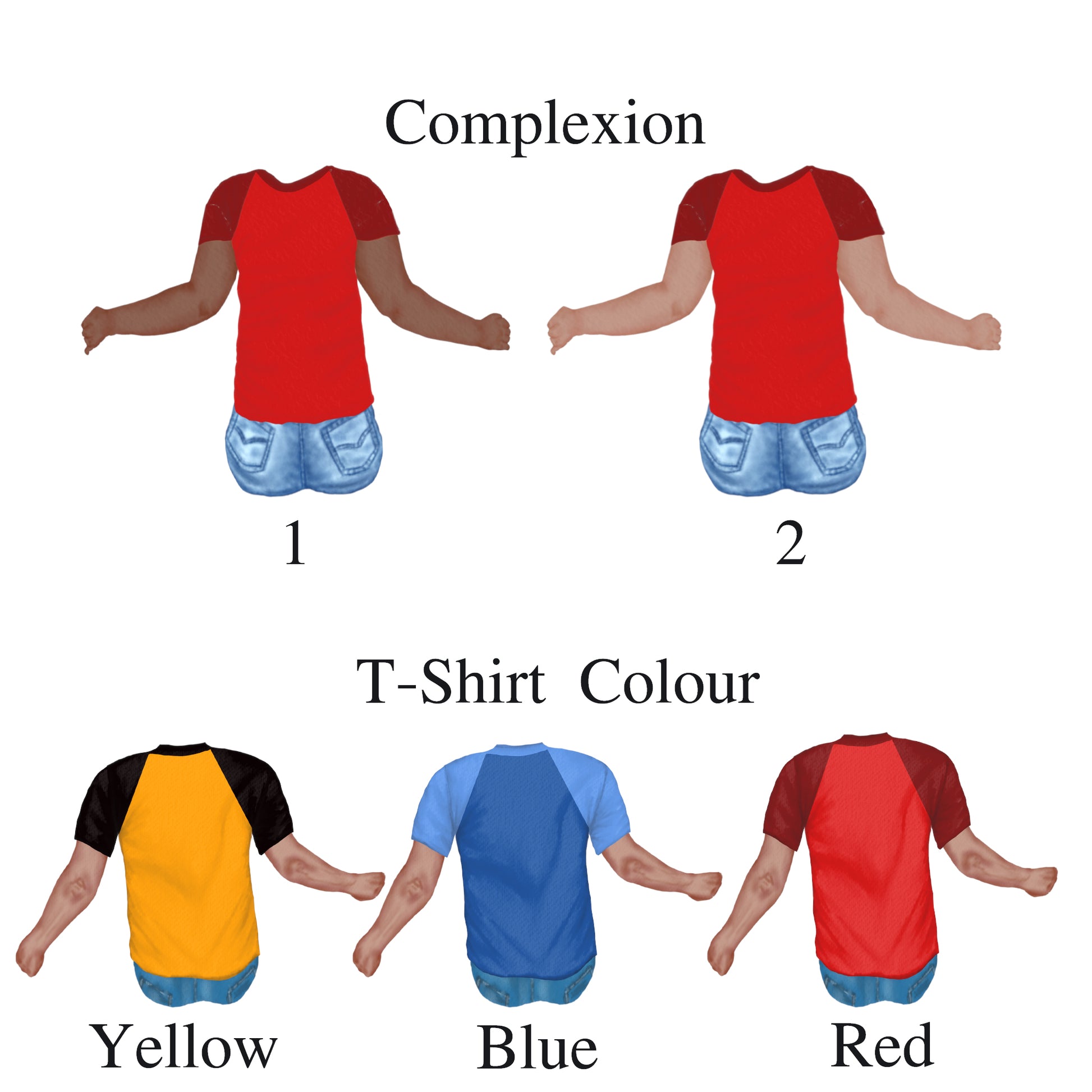 4) Specify colour of Tshirt; Red, Blue or Mustard