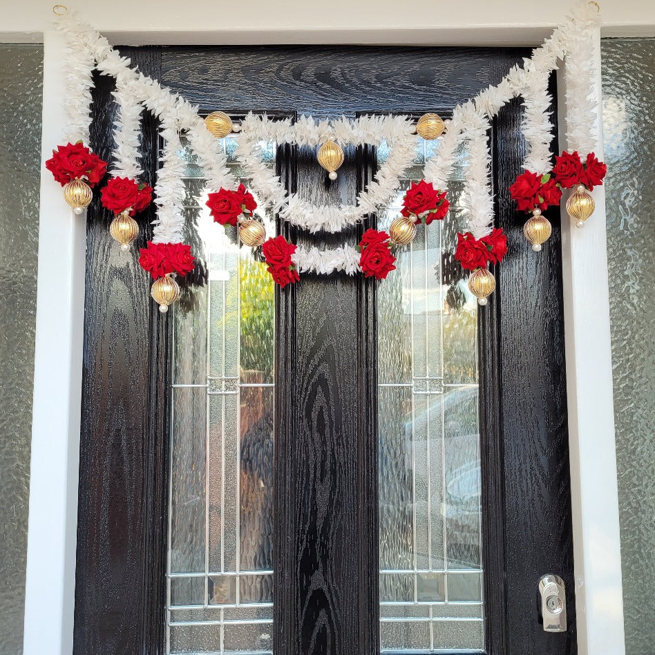 Our Premium Toran is one of a kind, eye catching and beautifully handmade using artificial Red Roses and White flowers.